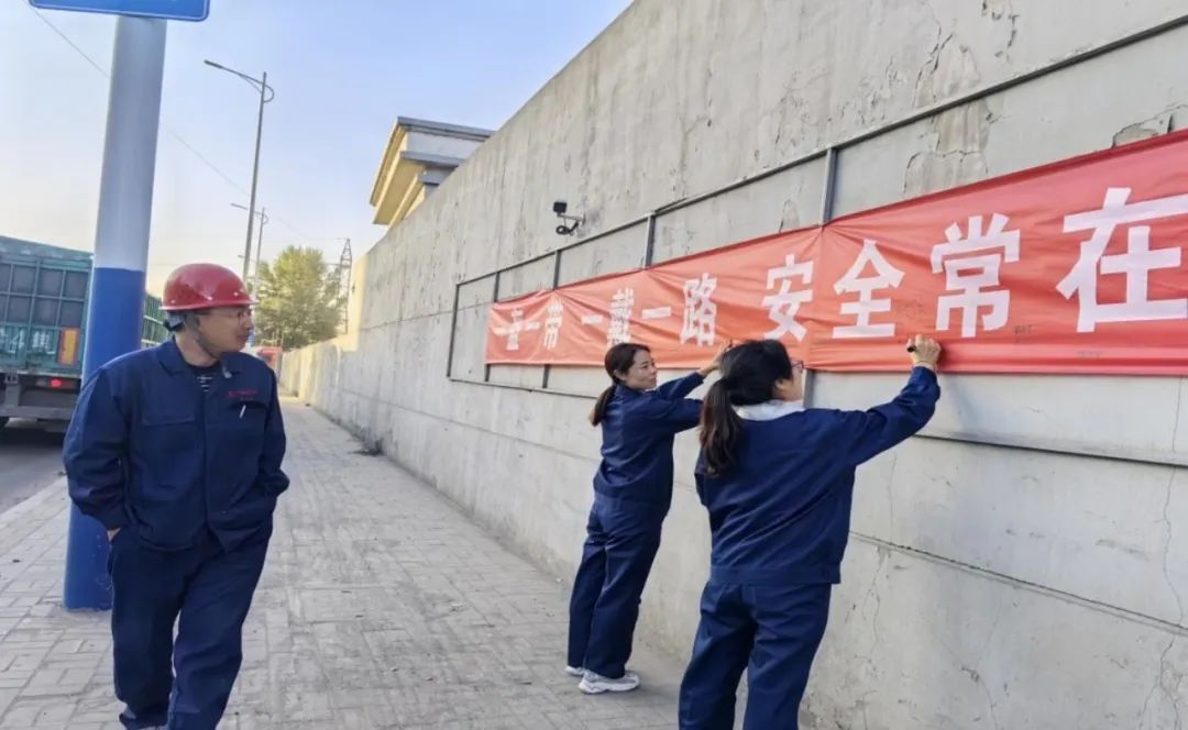 新星公司工會組織全體職工在“一盔一帶·一戴一路·安全常在”橫幅上簽名,承諾以實際行動遵守交通規(guī)則、文明出行、安全出行。